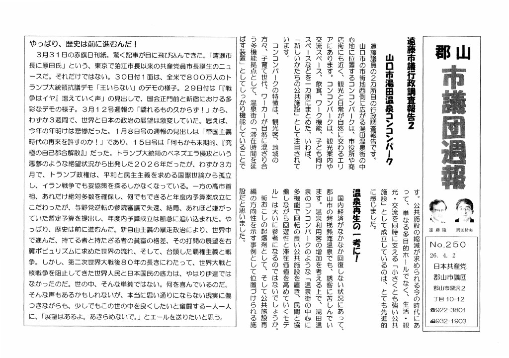 郡山市議団週報 No250 ‘260402