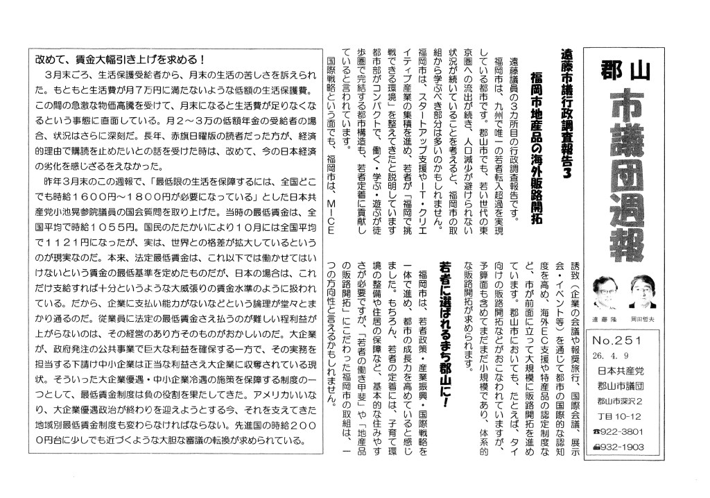 郡山市議団週報No251. ‘26.4.9